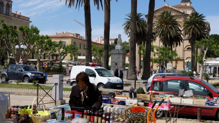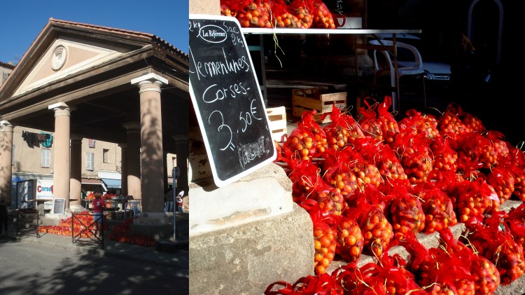 L’île-Rousse, la place Paoli et son marché couvert aux 21 colonnes antiques, à 10 mns en voiture de Lozari.