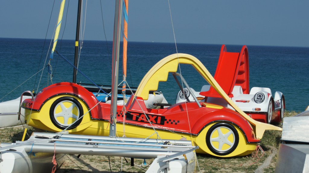 Centre nautique de Lozari, sur la plage, en saison, kayak de mer, stand-up, paddle, pédalo, etc…