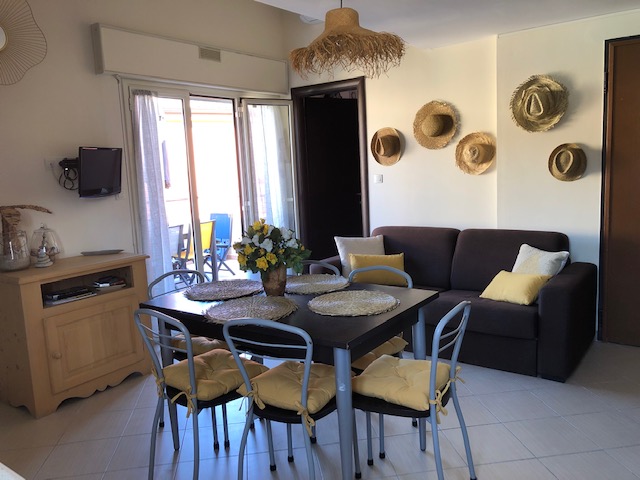 Lumineux et entièrement climatisé, votre appartement s’ouvre sur une agréable pièce à vivre bien décorée , avec canapé-lit 3 places, TVHD satellite et chaines étrangères, table et 6 chaises, meuble d’appoint, une cuisine américaine ( vue piscine ) bien équipée, comprenant lave-vaisselle, lave-linge, four, plaques vitro-céramique, micro-ondes, cafetière à filtre et Nespresso, bouilloire, grille-pain, réfrigérateur-congélateur, BBQ, et une grande terrasse avec vue mer et piscine, mobilier de jardin avec table, 6 chaises, 4 transats et parasol. Les enfants sont les bienvenus ( lit parapluie, chaise haute bébé sont à votre disposition gratuitement ) ainsi que des chaises de plage, sèche-cheveux, fer et table à repasser, kit d’accueil ).